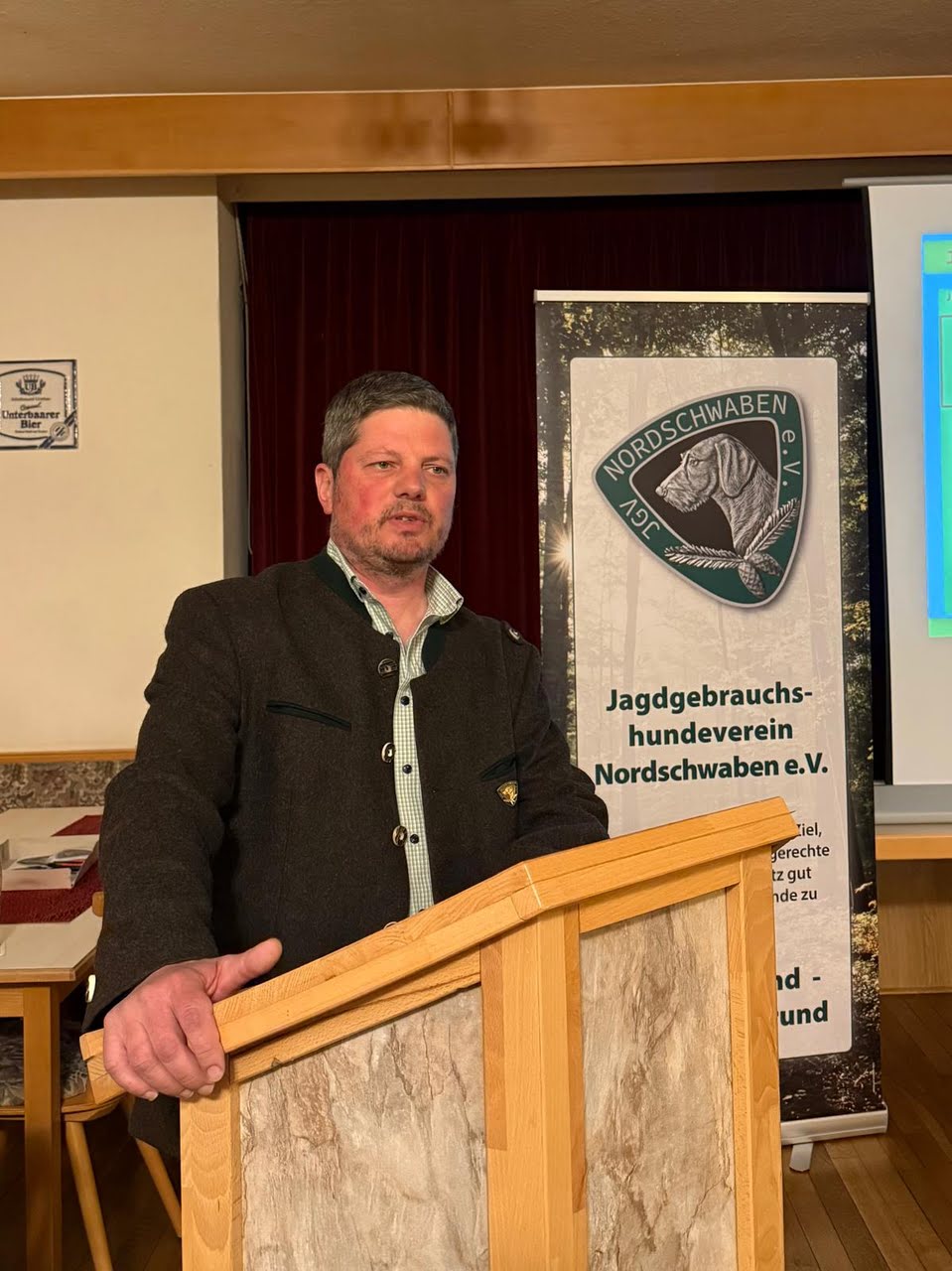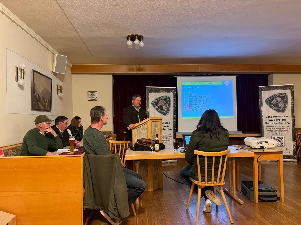 Unsere Jahreshauptversammlung fand am Freitag, 27.03.2026 im Gasthaus Braun in Wörnitzstein statt. Nach der Eröffnung durch unsere Jagdhornbläser erhielten die Vereinsmitglieder aktuelle Information von unserer Vorstandschaft über aktuelle Themen des JGHV, Mitgliederzahlen, Kassenbericht, Richterwesen und Prüfungsinhalten. Es folgte die Übergabe der Leistungszeichen aus 2025 und der neuen Richterausweise. Anschließend klang der Abend mit geselligem Beisammensein und interessanten Gesprächen über die laufende Prüfungssaison aus.